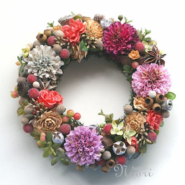 ポンポンマムとローズ、木の実などをふんだんにあしらい