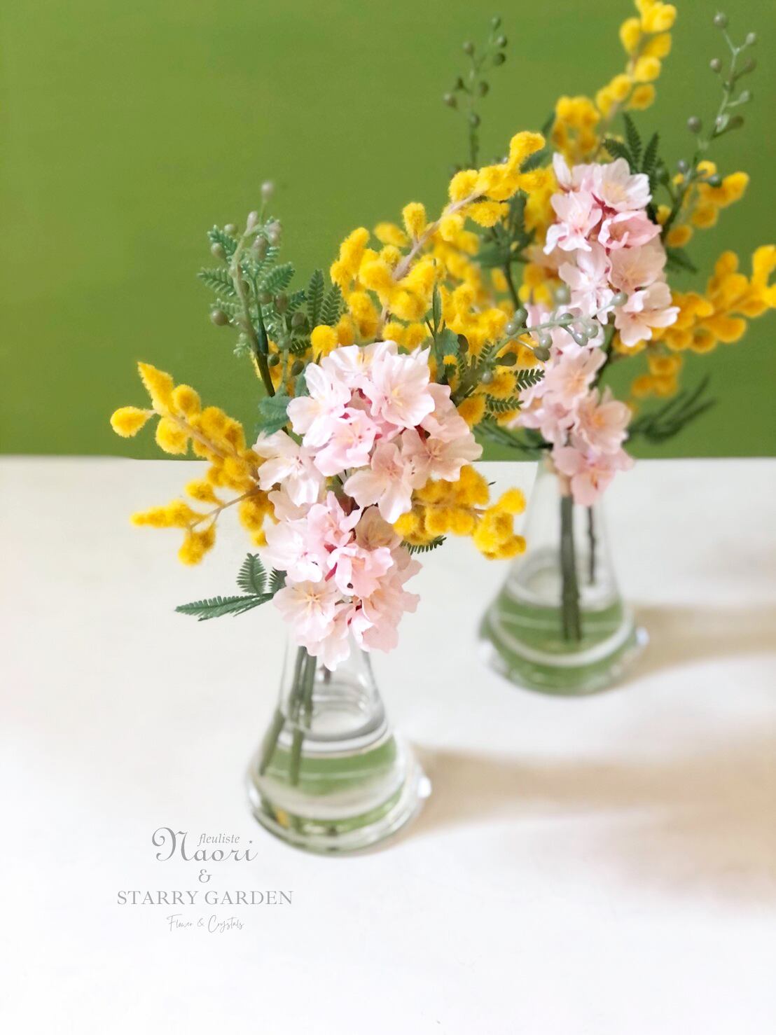春満開!ミモザと桜の花瓶付きアレンジ ずっと楽しめるアーティフィシャルフラワー